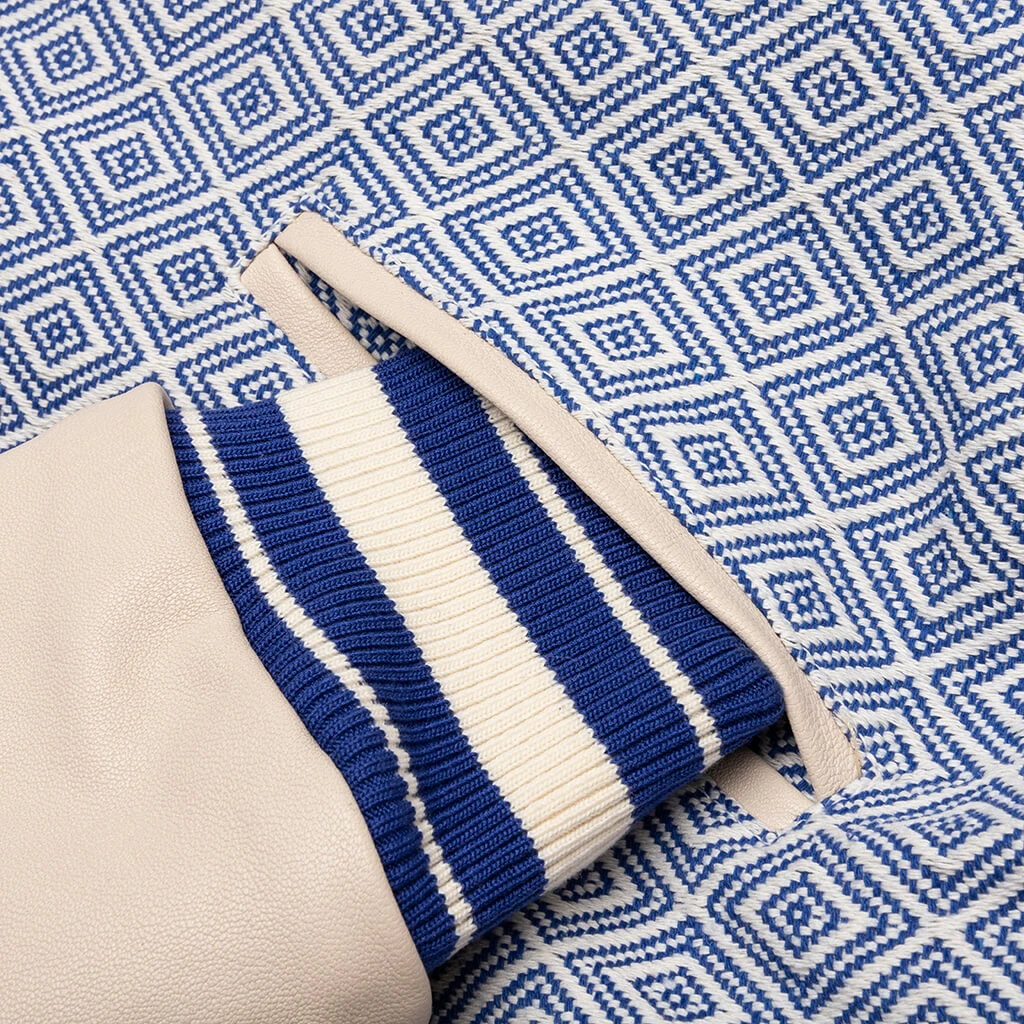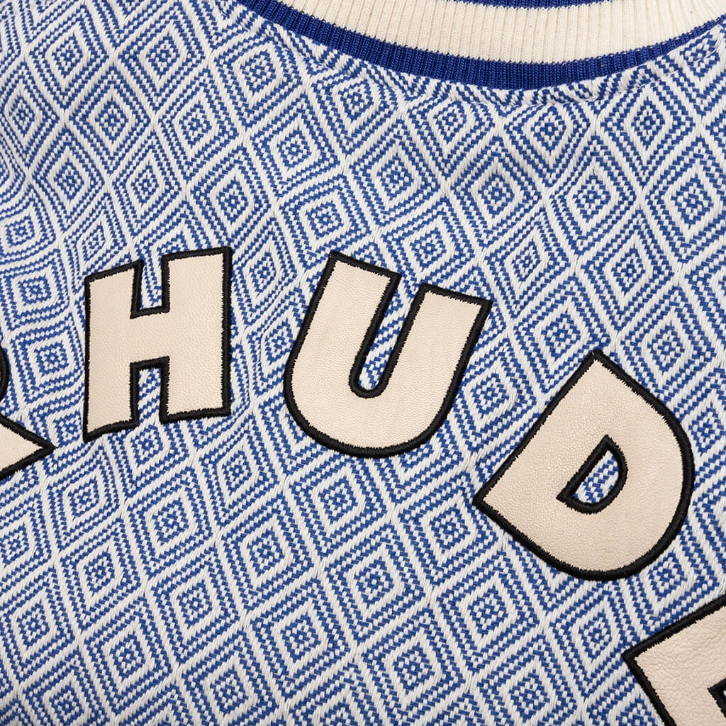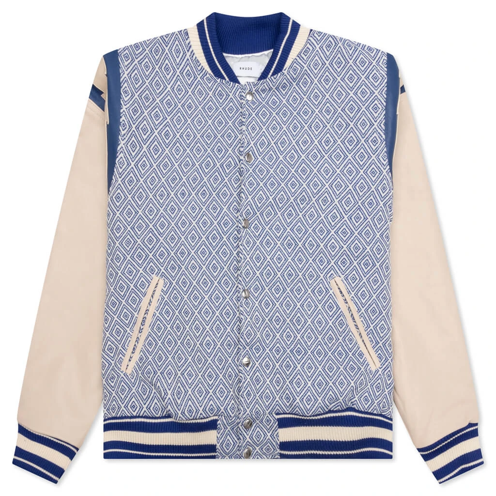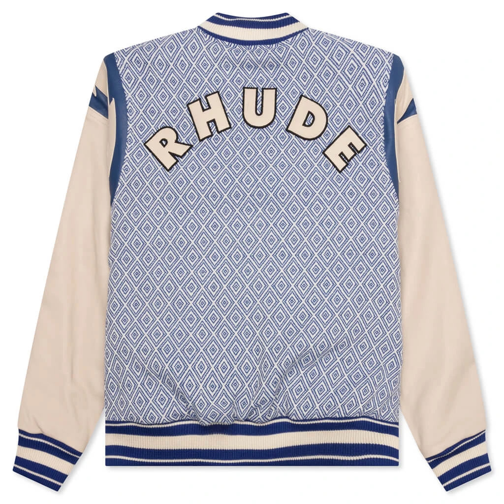 Elevate your outerwear rotation with the Rhude Jacquard Lightning Bomber. Made from a blend of polyester, cotton, and lambskin leather, the silhouette utilizes a luxurious jacquard pattern and twin lightning bolt applique on each shoulder. Twin pockets are placed at the front, while the custom Rhude snap closure and the rib-knit detailing on the trims completes the look.