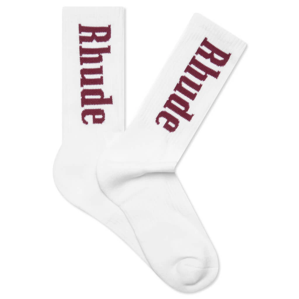 The Rhude Logo Sock is a must-have for any wardrobe. The socks are crafted from cotton, nylon, polyester, and spandex for a comfortable experience. Jacquard branding is seen, while the ribbed detailing finishes the look.