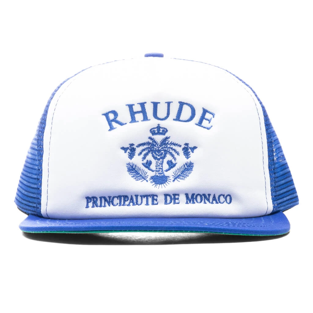 Rhude’s Principaute Hat is the latest addition to the brand’s ongoing delivery. Composed of polyester at the front, mesh material resides at the sides and rear. Embroidered branding and phrasing reside at the front, while the adjustable back strap adds a secure fit.