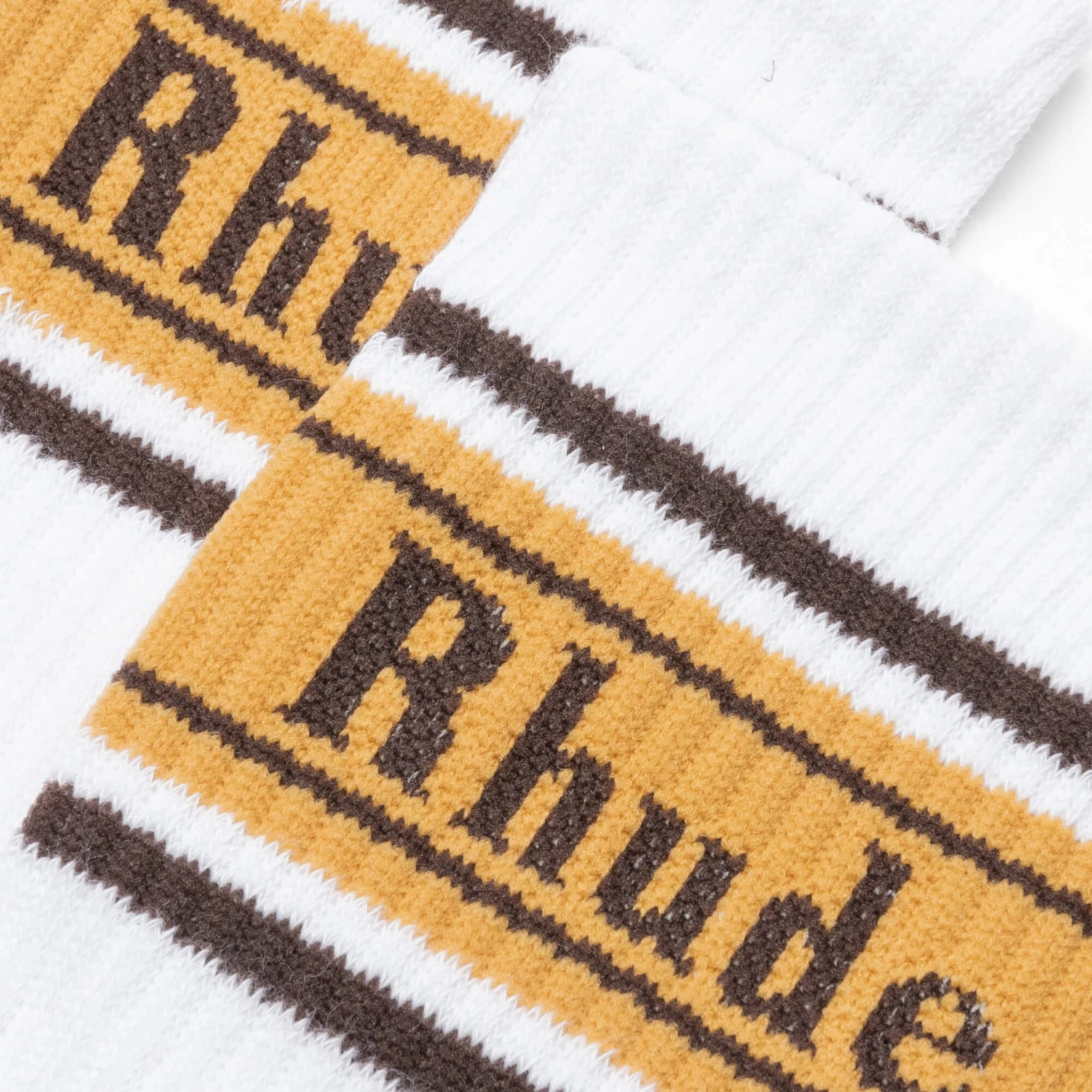 Add a premium accessory into your rotation with the Rhude Stripe Logo Sock. Composed of a blend of cotton, nylon, polyester, and spandex, the design features stitched branding at the ankle. The ribbed detailing finishes the look.