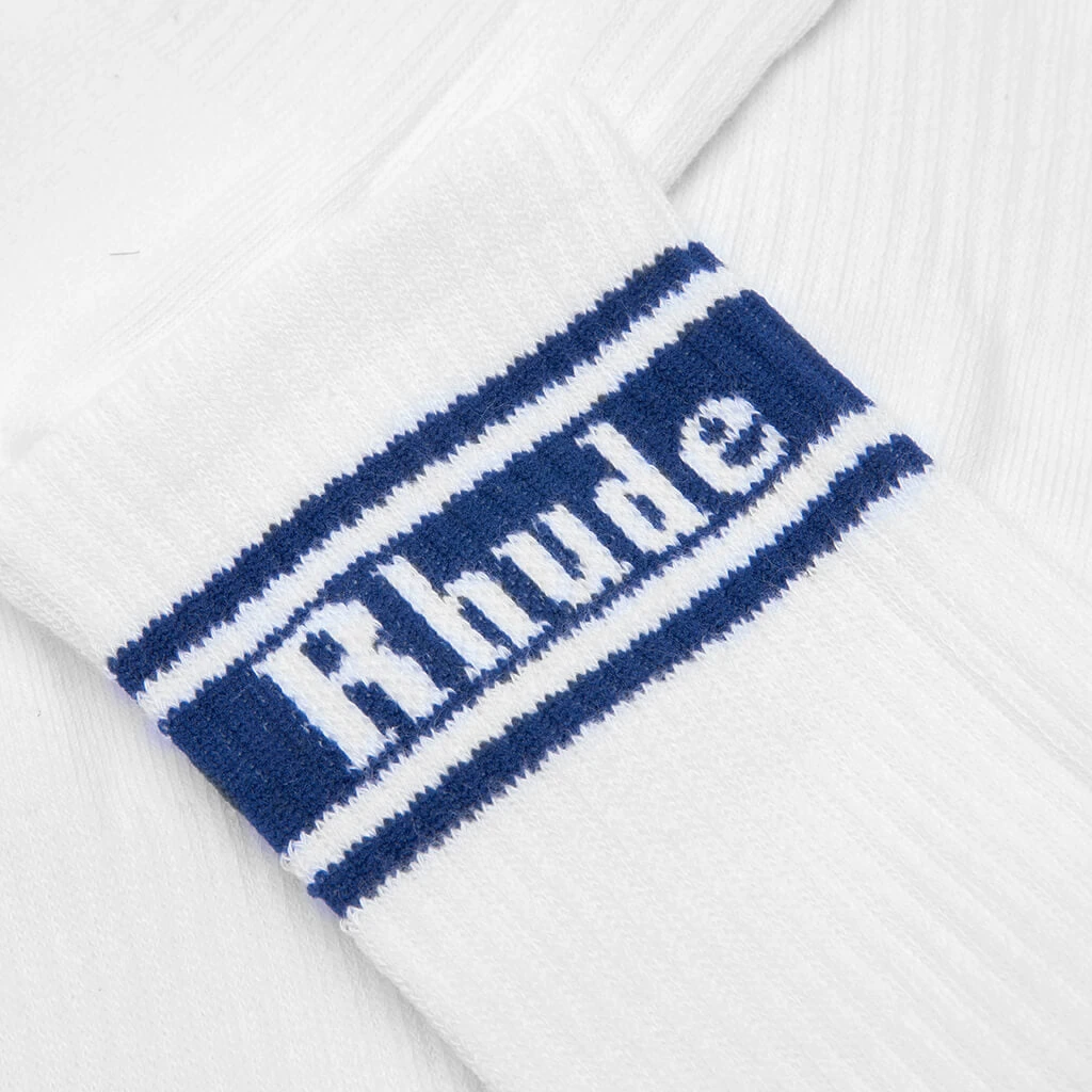 Add a premium accessory into your rotation with the Rhude Stripe Logo Sock. Composed of a blend of cotton, nylon, polyester, and spandex, the design features stitched branding at the ankle. The ribbed detailing finishes the look.