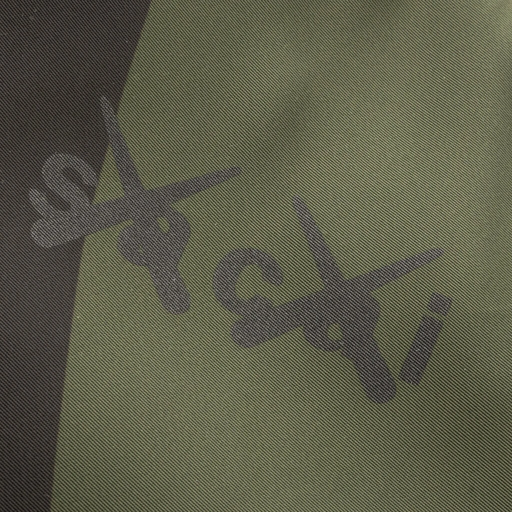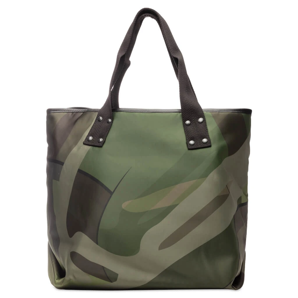 Sacai partners with renowned artist Kaws on a collaborative project that showcases apparel, accessories, and lifestyle products. The Large Tote in Camouflage is a bold design that features printed branding upon its smooth nylon complexion. The bag features two straps, inner pockets, and metal hardware.