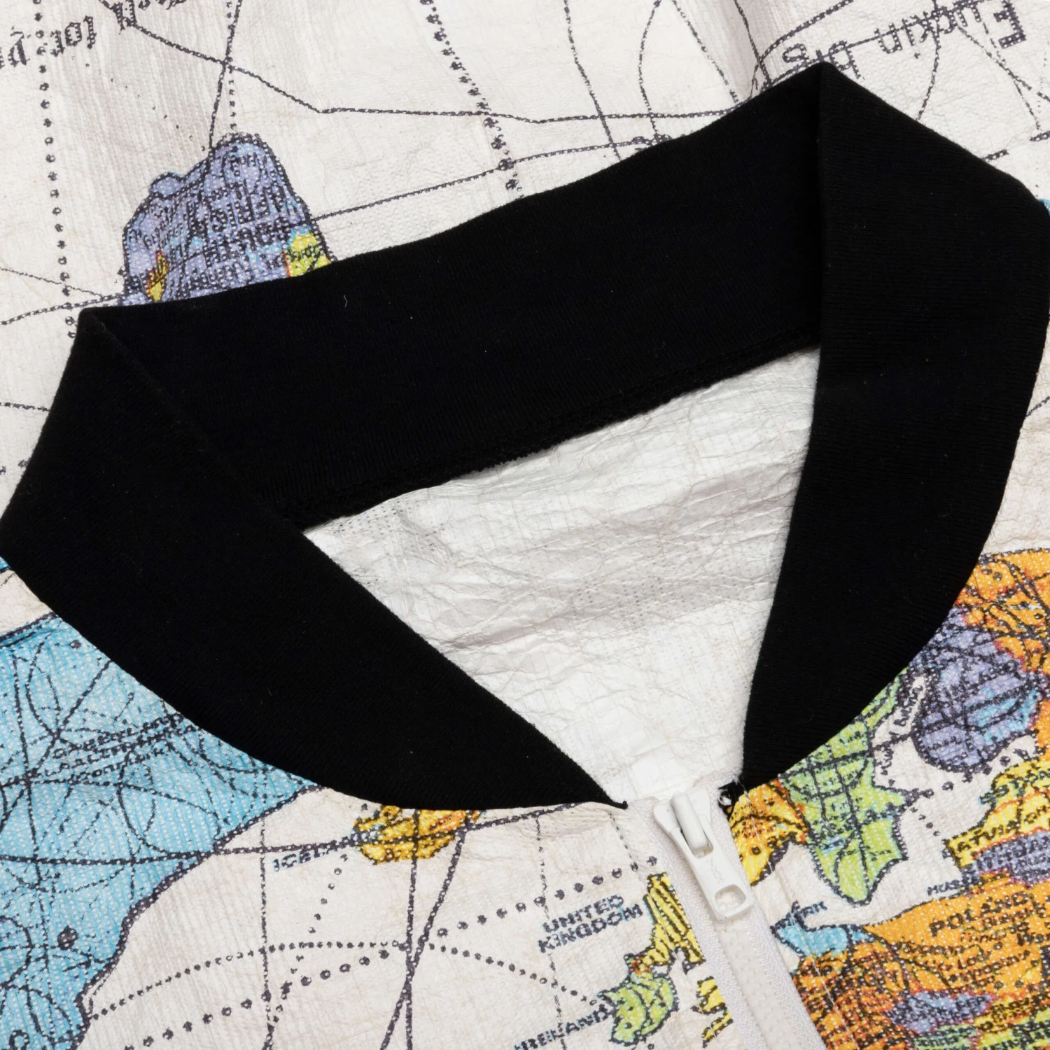 Saint Michael’s World Map Jacket is a unique design. Made from polyester, the jacket includes a full-zip closure, stand collar, and hand pockets. The all-over world map print completes the remainder of the design.