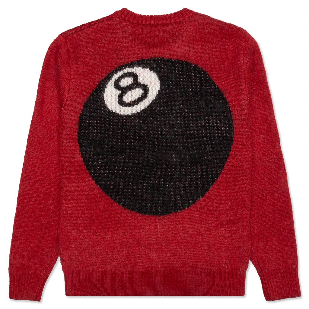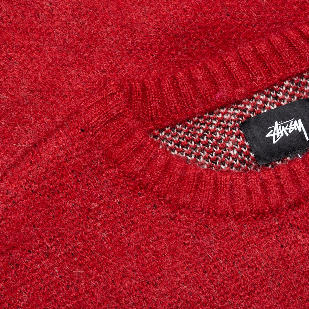 Originating in the 1980s, Shawn Stussy’s emerged in Laguna Beach as a product of surf culture. ‘Scrawled’ logos of the Stussy surname marked handmade surfboards and is now known as one of the oldest original streetwear brands. Pictured is the Stussy 8 Ball Heavy Brushed Mohair Sweater in Red.