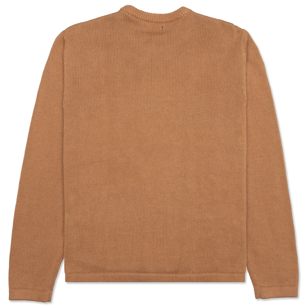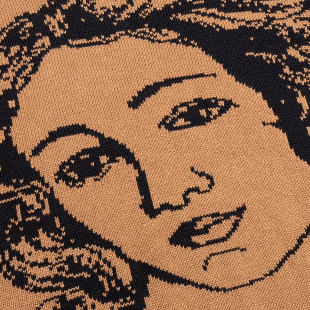 Originating in the 1980s, Shawn Stussy’s emerged in Laguna Beach as a product of surf culture. The Venus Sweater is a loose fit, double knit sweater with a Venus Goddess graphic on the front. Pictured is the Stussy Venus Sweater in Brown.